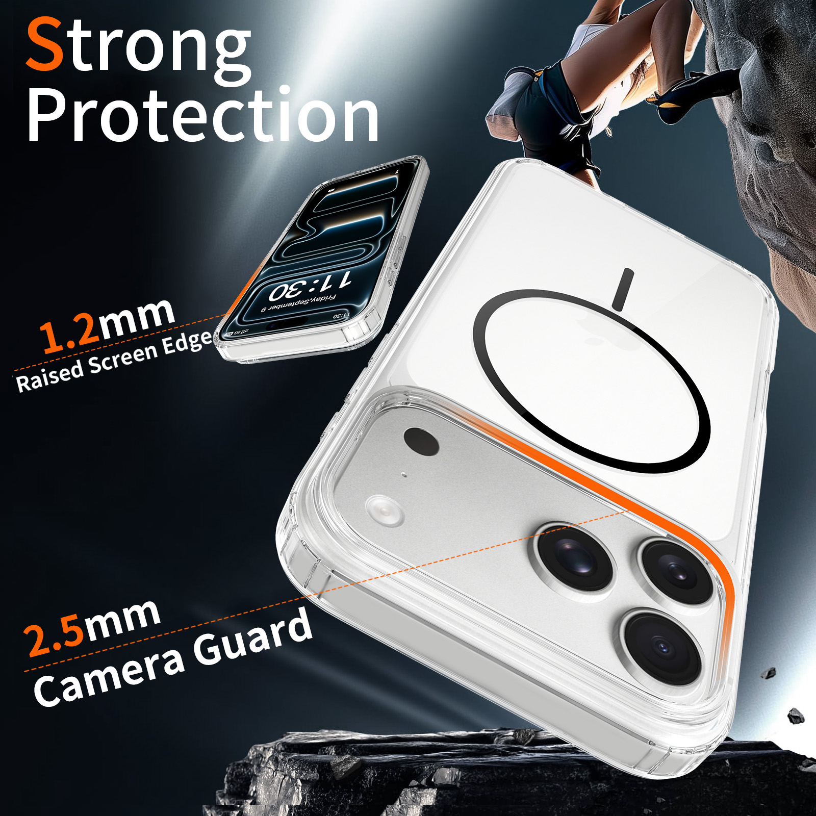 thick TPU+PC hybrid phone case, with drop test certification, unique gradient magsafe circle, N52 strong magnet